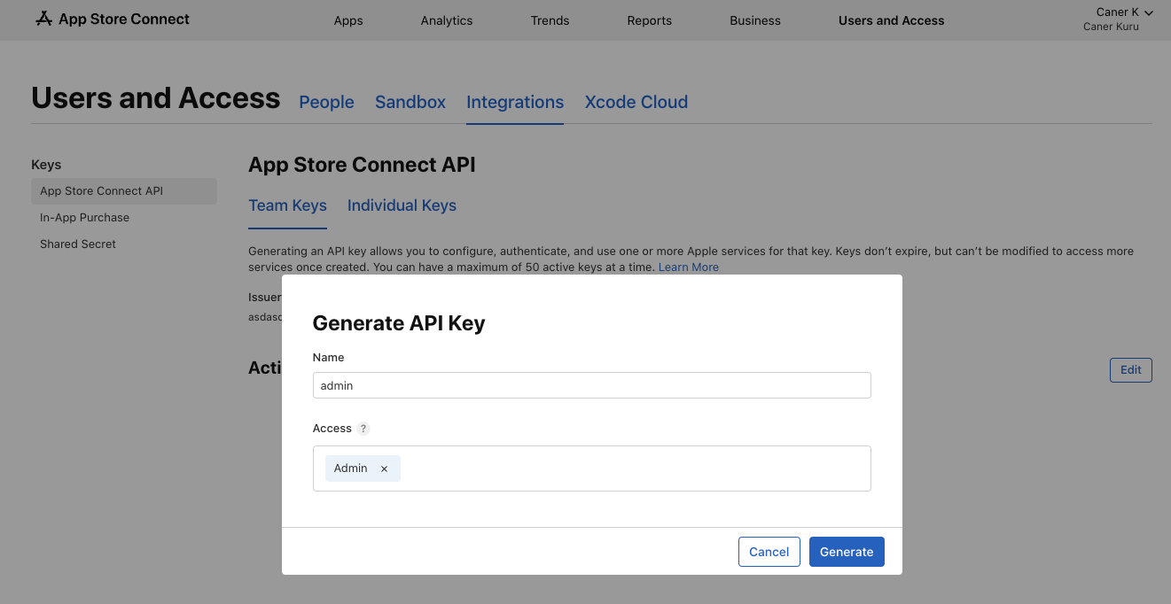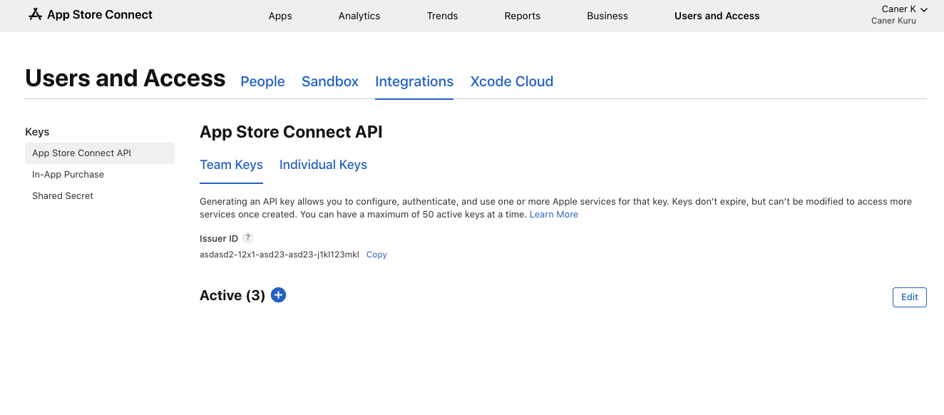 After generating the key, you’ll see a new item in the table. Download the key (.p8 file) and create a folder in the root directory of your project to store it by running the following command: