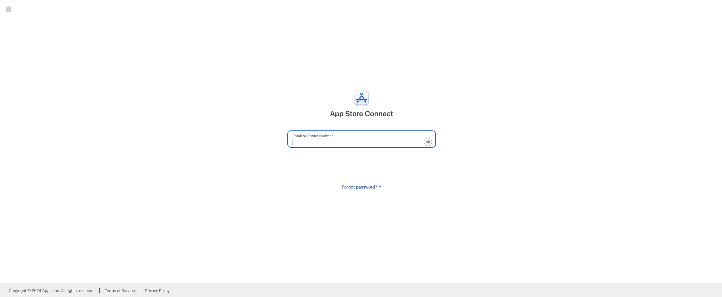 Next, log into your Apple account at App Store Connect and navigate to the "Apps" screen.